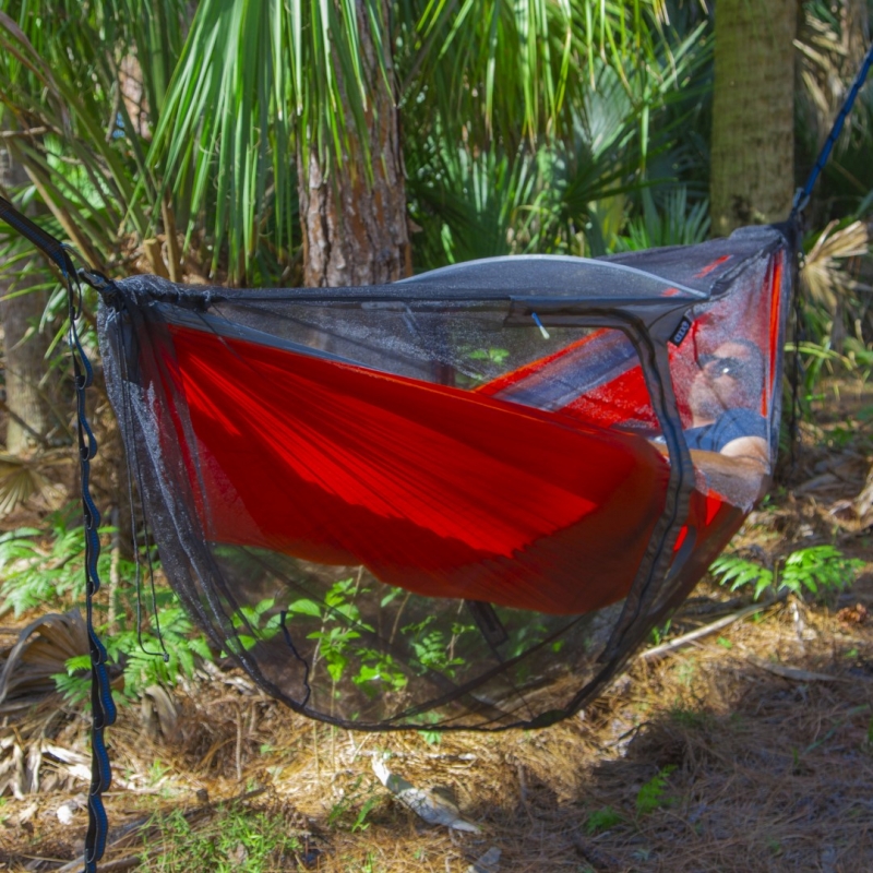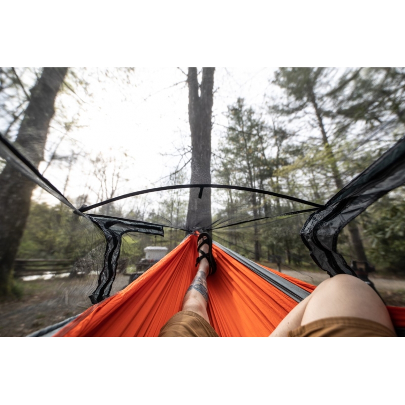 Dual doors and signature ENO zipper pulls allow for ease of entry and increased ventilation. The integrated DAC Featherlite spreader bar, and innovative ridgeline construction, help to optimize the interior volume and reduce your contact with the mesh, keeping you safe from insects.