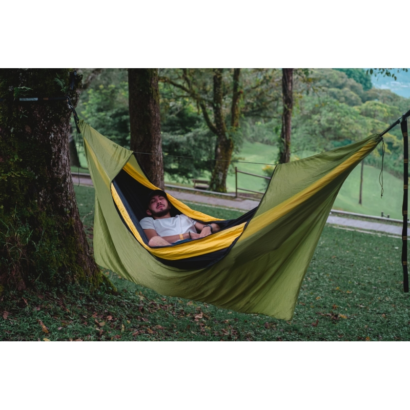 Mosquito net fits most commercially available hammocks (without spreader bars). The fully convertible top quickly opens thanks to double circular YKK zippers for extra freedom of movement, when the coast is clear or you want to increase air flow.