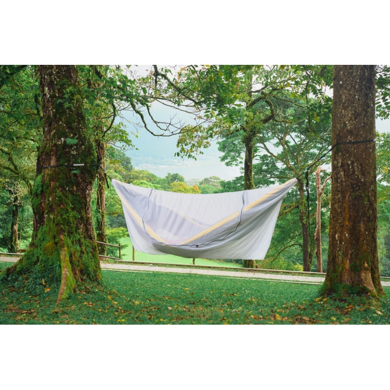 Mosquito net fits most commercially available hammocks (without spreader bars). The fully convertible top quickly opens thanks to double circular YKK zippers for extra freedom of movement, when the coast is clear or you want to increase air flow.