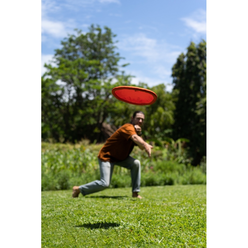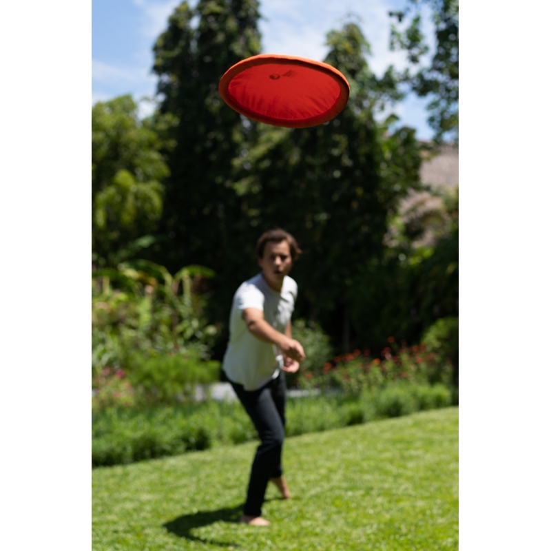 This travelling and everyday toy is entirely handcrafted from left-over parachute fabric and has the same dimensions as standard ultimate frisbees. It navigates through the air just as brilliant as a professional disk, while it folds down surprisingly small and is insusceptible to deforming or breaking.
