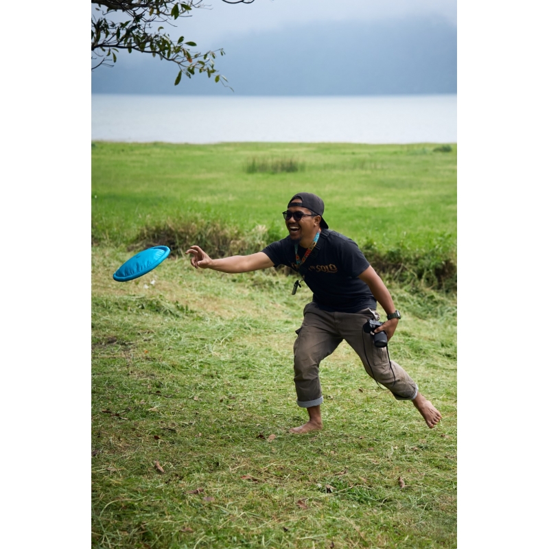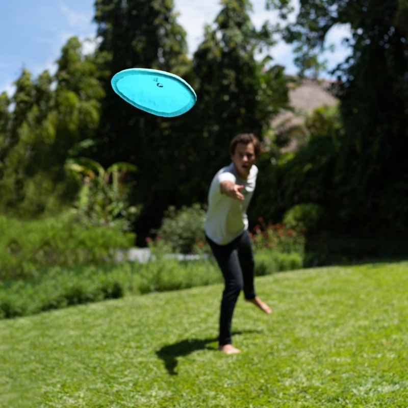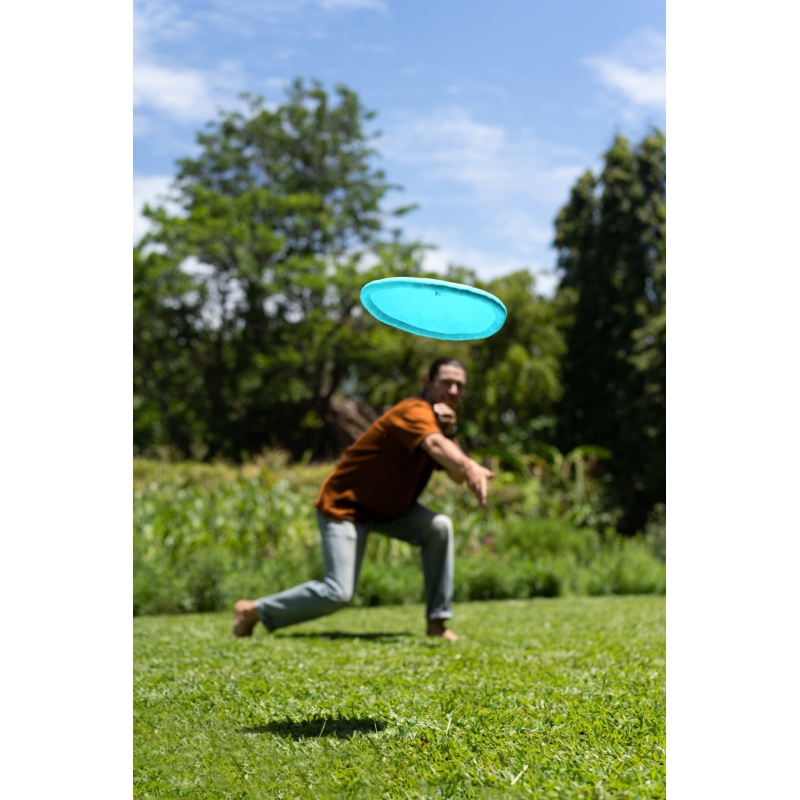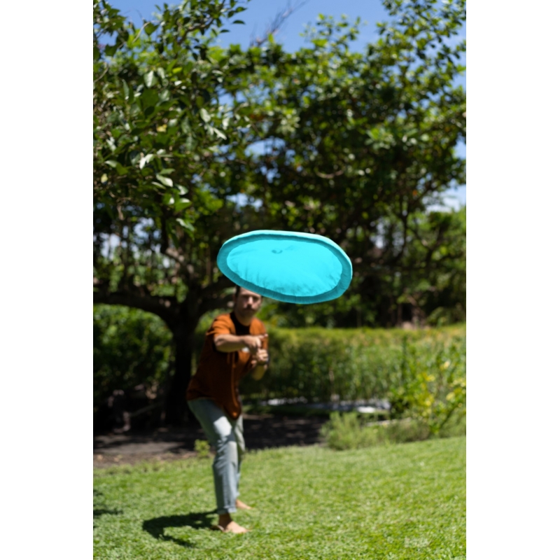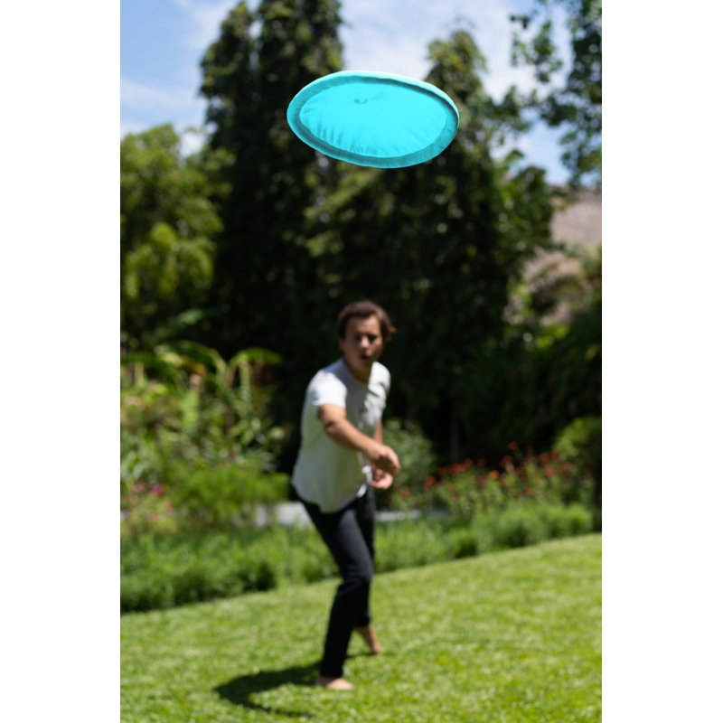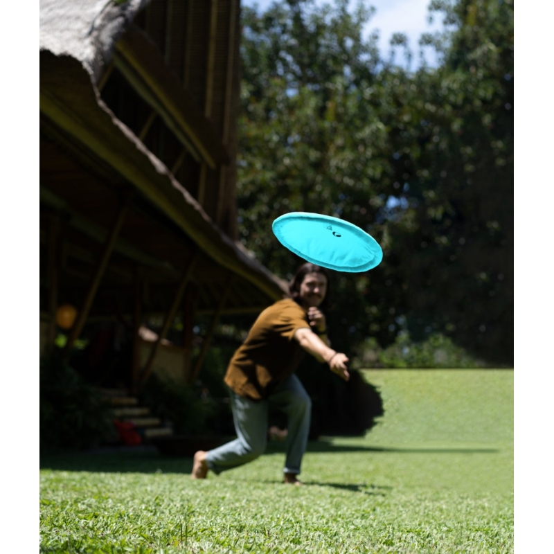 This travelling and everyday toy is entirely handcrafted from left-over parachute fabric and has the same dimensions as standard ultimate frisbees. It navigates through the air just as brilliant as a professional disk, while it folds down surprisingly small and is insusceptible to deforming or breaking.