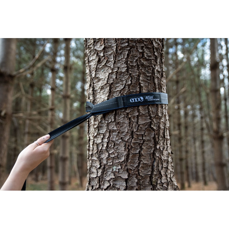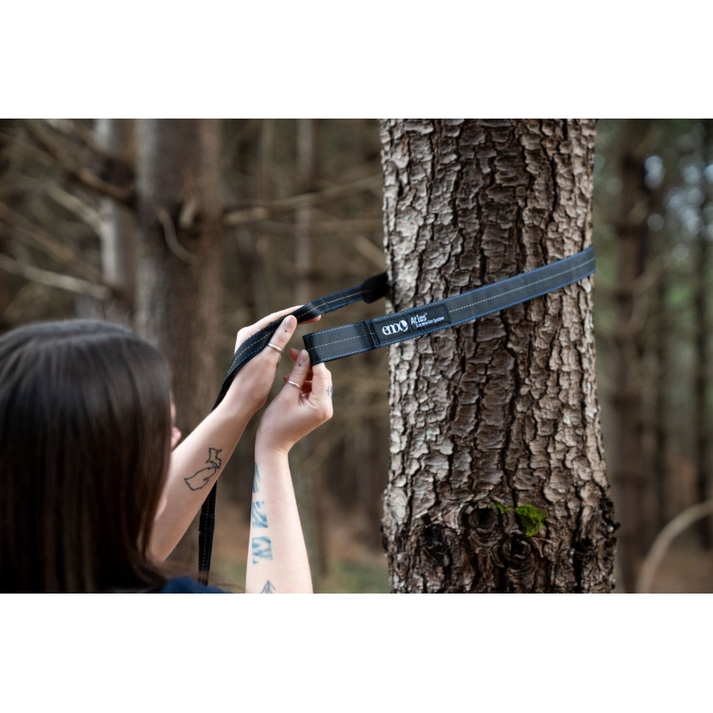 The Atlas minimizes your hammock's impact on nature with extra wide tree-friendly webbing.