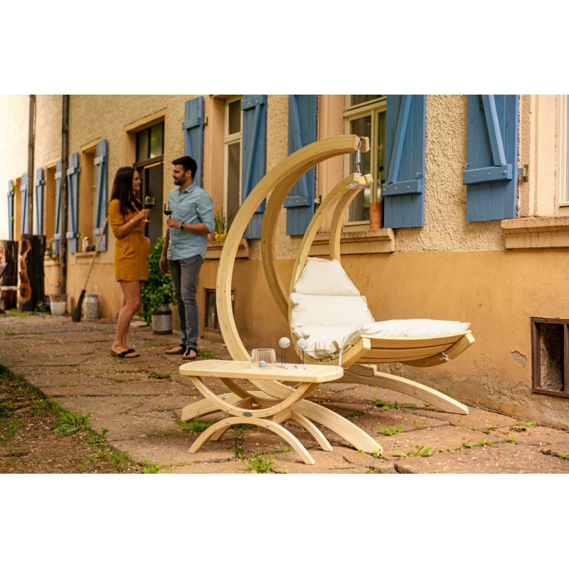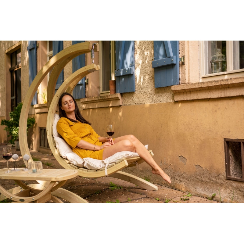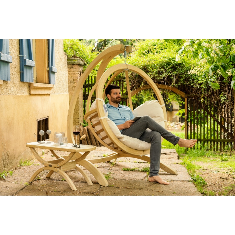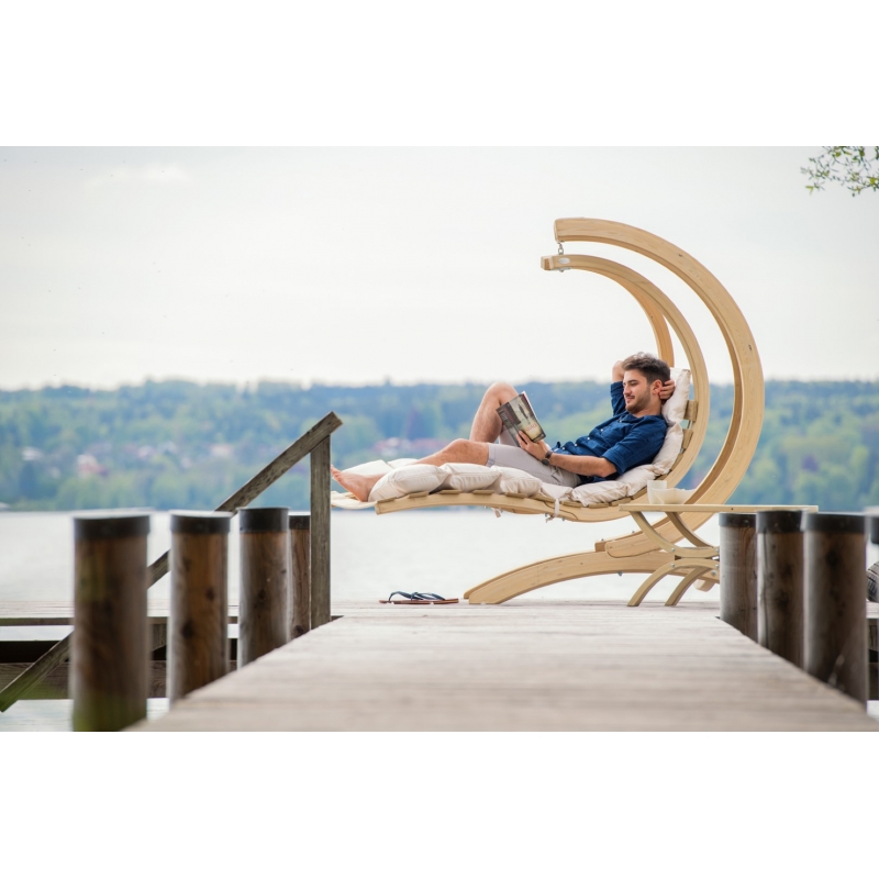 Fine, hanging chair frame made carefully by hand from weatherproofed spruce.