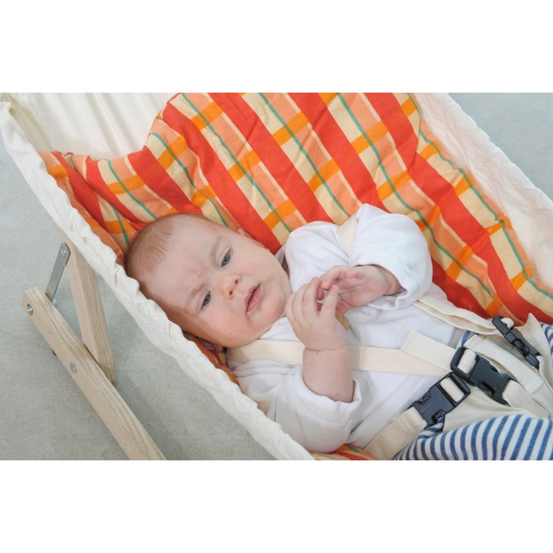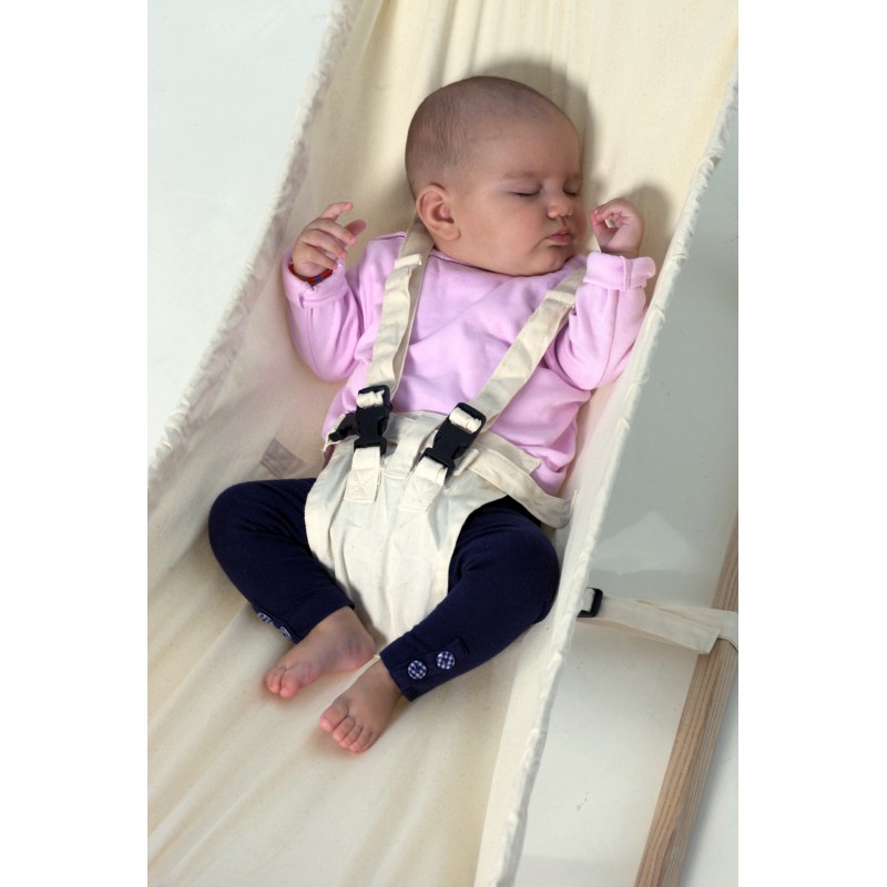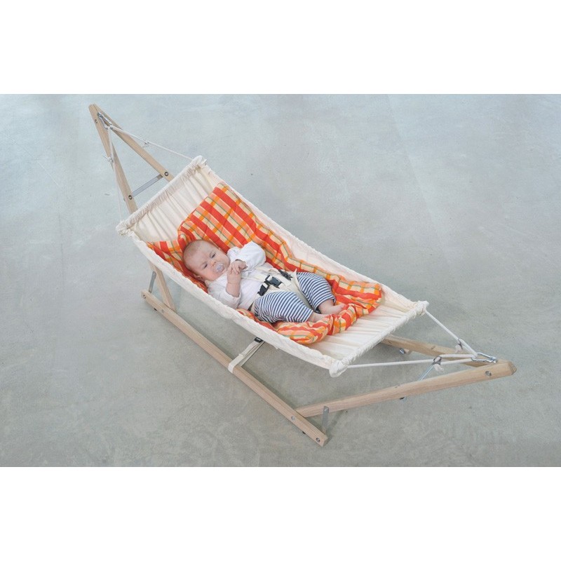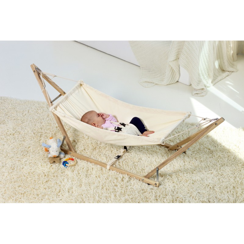 The modern alternative to a bassinetThe baby hammock Kangoo looks best if mounted in Carrello Baby, the gorgeously shaped baby hammock stand made of untreated spruce wood. But Carrello Baby is also the perfect stand for the baby hammock Kaya natura. (Hammock not included)