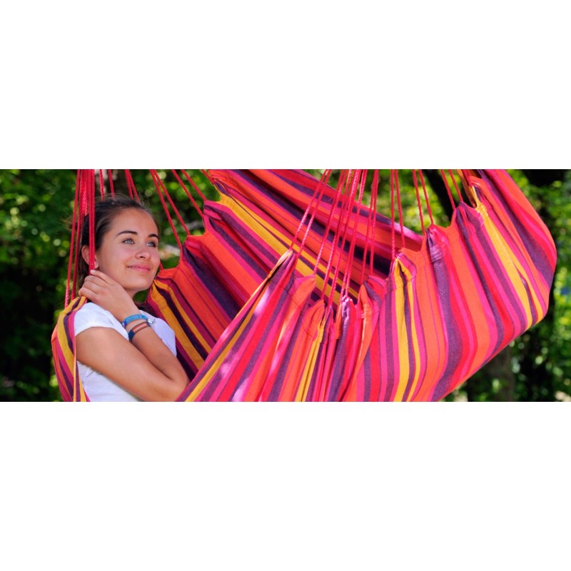 Hammock chair basic Caribeña with fresh stripes offers a maximum in comfort in a minimum amount of space- a hint of the Caribbean in your home.