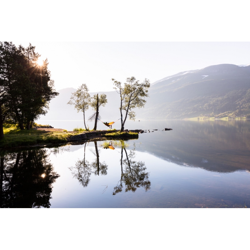 Our hammock made of parachute silk! Thanks to the high performance system it is not only extremely durable and stable, the material used is also very soft, pleasant to touch and breathable!