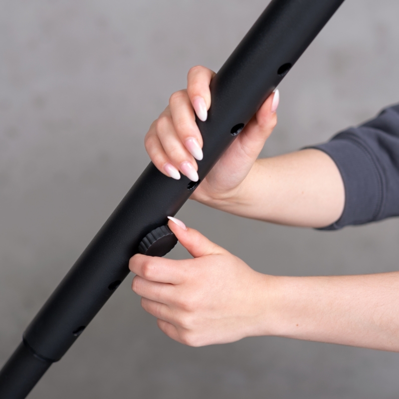Statykite šį stovą lengvai ir greitai visur, kur šiuo metu jo prireiks – tiesiog sujunkite vamzdžius ir išgirskite fiksacijos garsą.