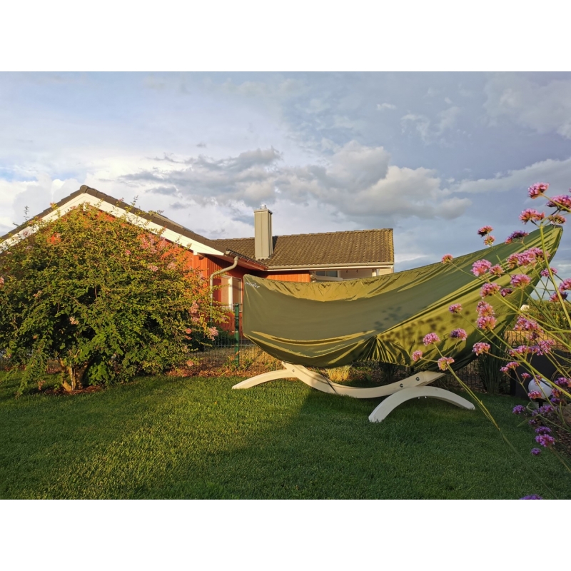 Uždangalas saugo hamaką nuo kritulių ir kitokio atmosferos poveikio, juo nesinaudojant.