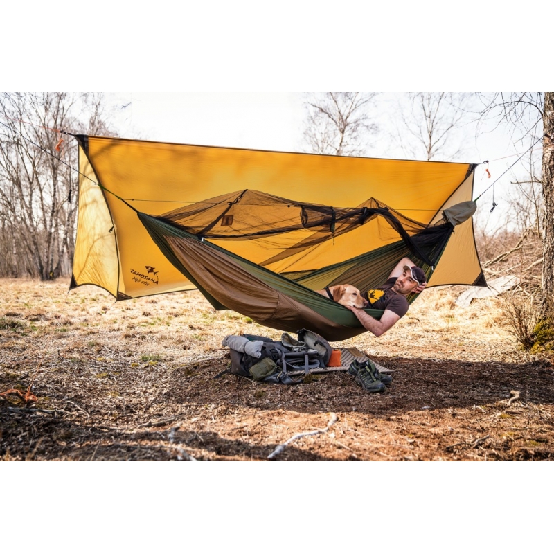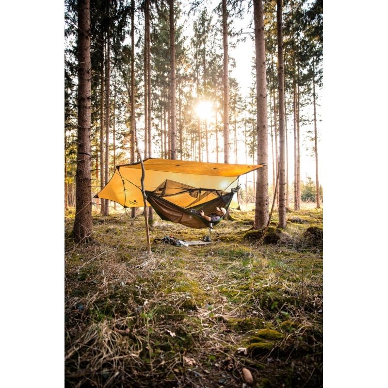 Šis tentas tinka ir prisitaiko visų dydžių Ultra light hamakams. Jums patiks nauja konstrukcija: pagal vėjo bei lietaus kryptį reguliuojamos, bei užsidarančios tento pusės, kurias lengva suvynioti vėjui nurimus. Tad naudokite savo hamaką net ir labai prastu oru!